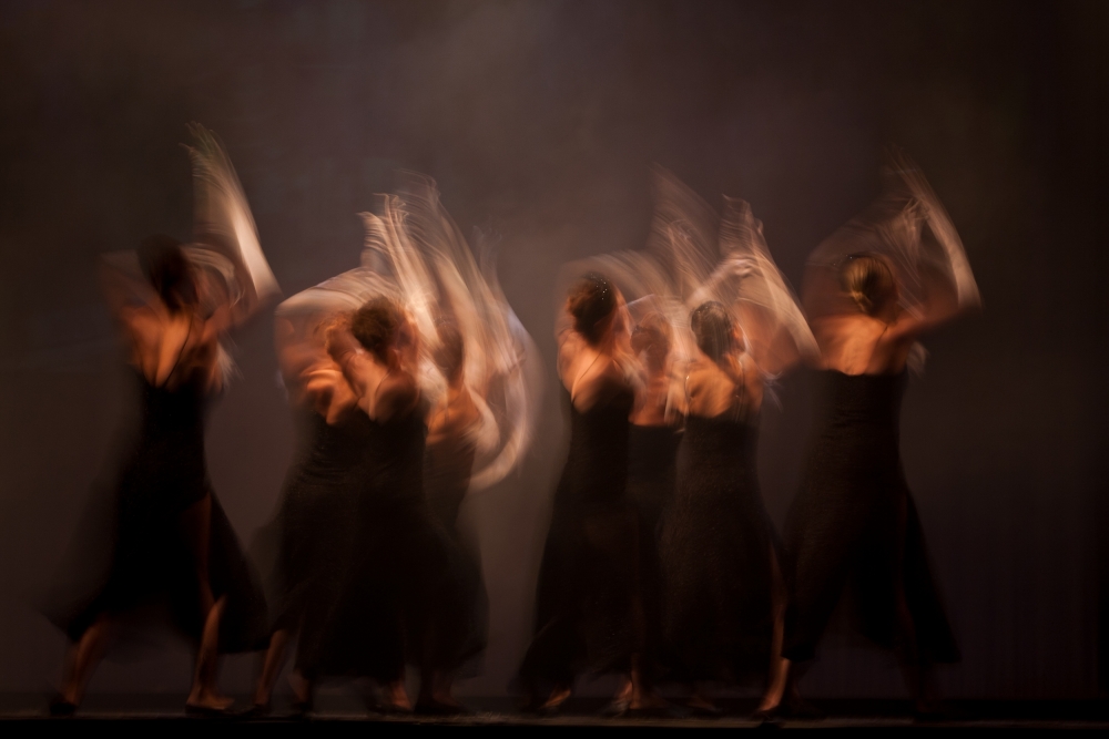 To transcribe the best dancing movement I decided to switch to manual mode to precisely adjust the camera. Decreasing ISO and aperture to increase shutter speed and enable IS on lens to absorb vibration. Difficult to get a good composition because the dancers are quick and you must anticipate their movement to fit properly. In manual mode there is a lot of bad picture (underexposed, overexposed, totally blur, subject cropped...) - I took a total of 16 images to have only one correct. You must control on the camera screen the result and it's the best way to find the good settings. You must quiclky switch your settings because lighting is changing very often (sometime to bright, sometime to dark).  When photographing a moving subject, you need to use a higher shutter time.