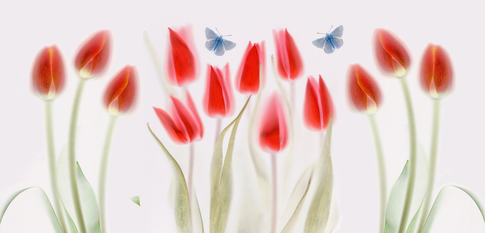 Amazing red tulips: inversed scan technique