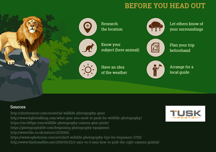 In order to guide you with the information about these equipment’s and exactly what other things, you should include in your bag pack, here we have an imaging infographic from Tusk Photo with very beautiful and interesting facts in it to help you be able to make the most, if not all. Have a look at it!