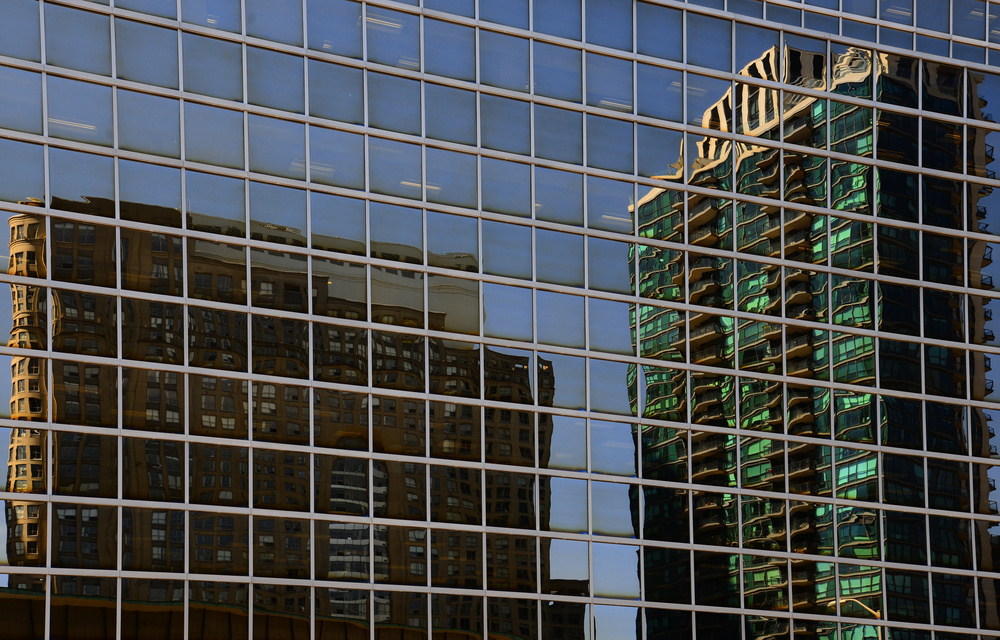 Reflective glass surfaces of buildings offer interesting opportunities for a good shot.