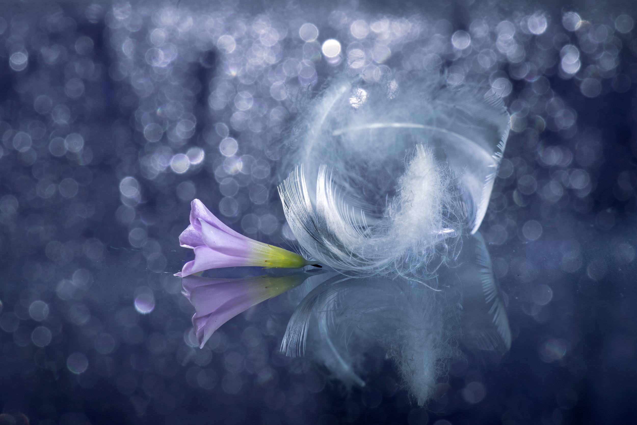 But I can tell something about an unusual photo. The set-up is built on glass and illuminated by a light source and under the glass - as if forming a continuation - another composition is built, which in turn is laid out on the glass where water droplets forming bokeh are located.
